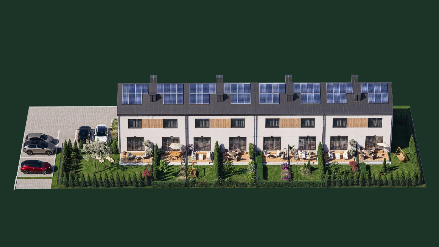 3-pokojowe segmenty z fotowoltaiką i pompami ciepła, zaledwie kwadrans od stacji PKP.