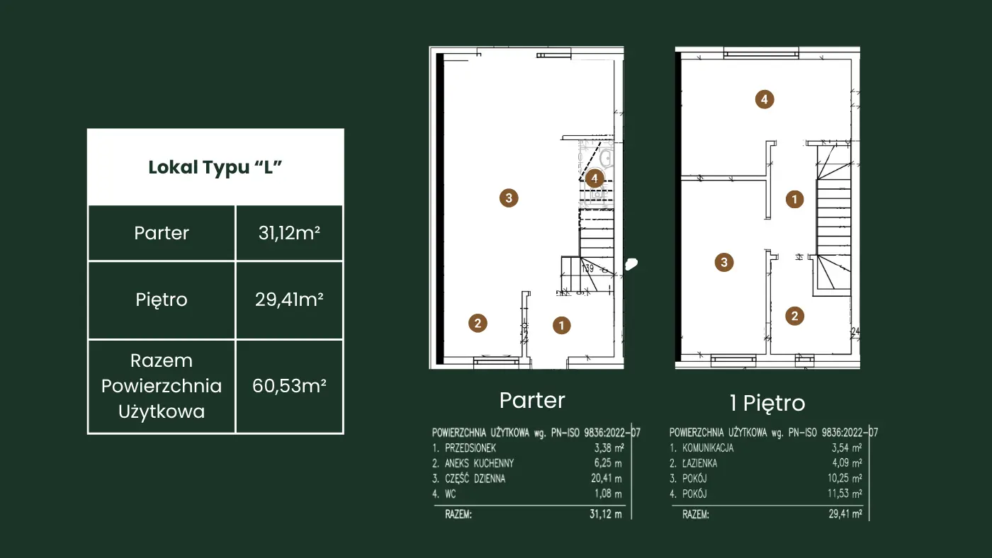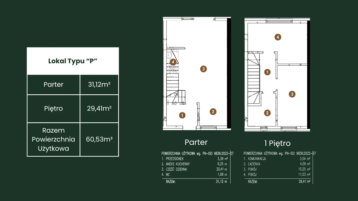 Funkcjonalny, dwupoziomowy układ: na piętrze znajdują się dwie komfortowe sypialnie i łazienka, a na parterze – przestronny salon z jadalnią, aneksem kuchennym oraz dodatkowe WC. To idealne rozwiązanie dla codziennej wygody i prywatności domowników.